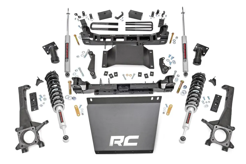 Total Transformation: Elevate your Toyota Tacoma with Rough Country’s 4-inch lift kit, providing boosted ground clearance and an aggressive stance for enhanced off-road performance.Premium Components: This all-inclusive kit includes durable lifted knuckles, front and rear crossmembers, and fabricated lift blocks, offering long-lasting reliability and rugged performance.Hassle-Free Installation: No need for strut disassembly or a compressor-installation is quick and easy, so you can get back on the trails faster.Unmatched Ride Quality: Fully configurable with multiple shock and strut options, choose from our nitrogen-charged N3 shocks for a smooth ride or upgrade to the M1 monotube for superior off-road control.Aggressive Look & Performance: Run up to 32 x 10.50 tires while achieving a bold, lifted profile that turns heads. Backed by Rough Country’s Limited Lifetime Replacement Guarantee, this kit is designed for the long haul.