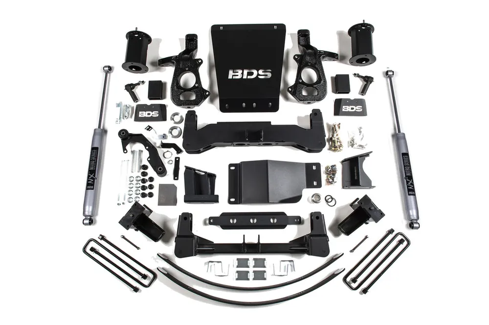 Go big with the BDS 8-inch lift kit for your 2014-2018 Chevy Silverado and GMC Sierra 1500 resulting in one of a kind lifted truck. Designed to improve stance, performance, and capability, this kit includes everything necessary to set your truck up right with clearance for up to 35″ tires