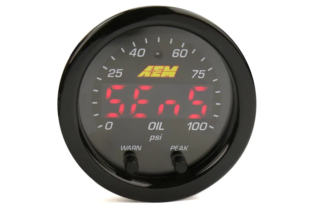 One of the most important engine vitals to monitor is your oil pressure, and AEM has designed an awesome gauge to monitor just that.With a easy to read LED center display, and sweeping LED needle, you will see an accurate pressure at quick glance.