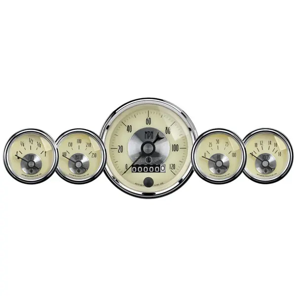 AutoMeter Gauge Kit 5 Pc 3-3/8in. & 2-1/16in. Elec Speedo W/Wheel Odo Prestige Antq. Ivory Holiday Sale