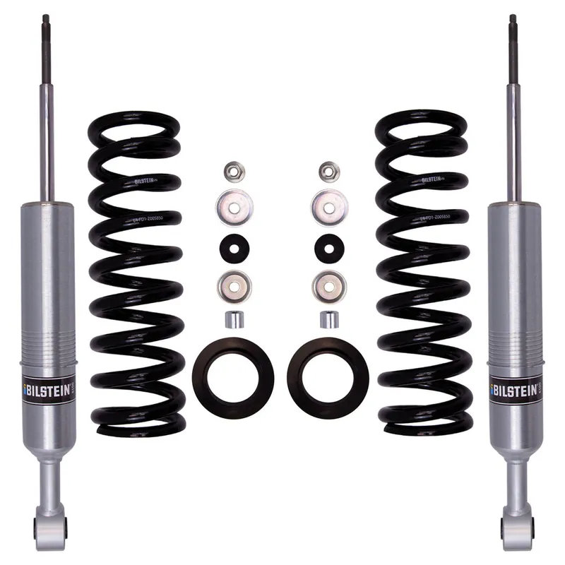 Bilstein B8 6112 leveling kits are designed to provide more ground clearance, allow for larger tires, and increase wheel travel. Multiple snap-ring grooves in the body allow for different spring seat positions, providing 0-2.75 inches of front lift (depending on application). These kits consist of (2) 60mm shock absorbers combined with (2) custom matched cold wound coil springs and (2) billet aluminum spring seats. The large 60mm digressive piston allows for increased damping control for optimal on-road and off-road capabilities. Experience the legendary Bilstein off-road experience with the best direct fit spring and shock kit for your light truck or SUV.