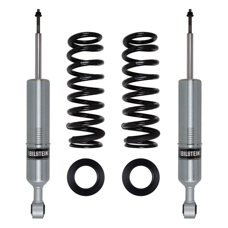 Bilstein B8 6112 leveling kits are designed to provide more ground clearance, allow for larger tires, and increase wheel travel. Multiple snap-ring grooves in the body allow for different spring seat positions, providing 0-2.75 inches of front lift (depending on application). These kits consist of (2) 60mm shock absorbers combined with (2) custom matched cold wound coil springs and (2) billet aluminum spring seats. The large 60mm digressive piston allows for increased damping control for optimal on-road and off-road capabilities. Experience the legendary Bilstein off-road experience with the best direct fit spring and shock kit for your light truck or SUV.