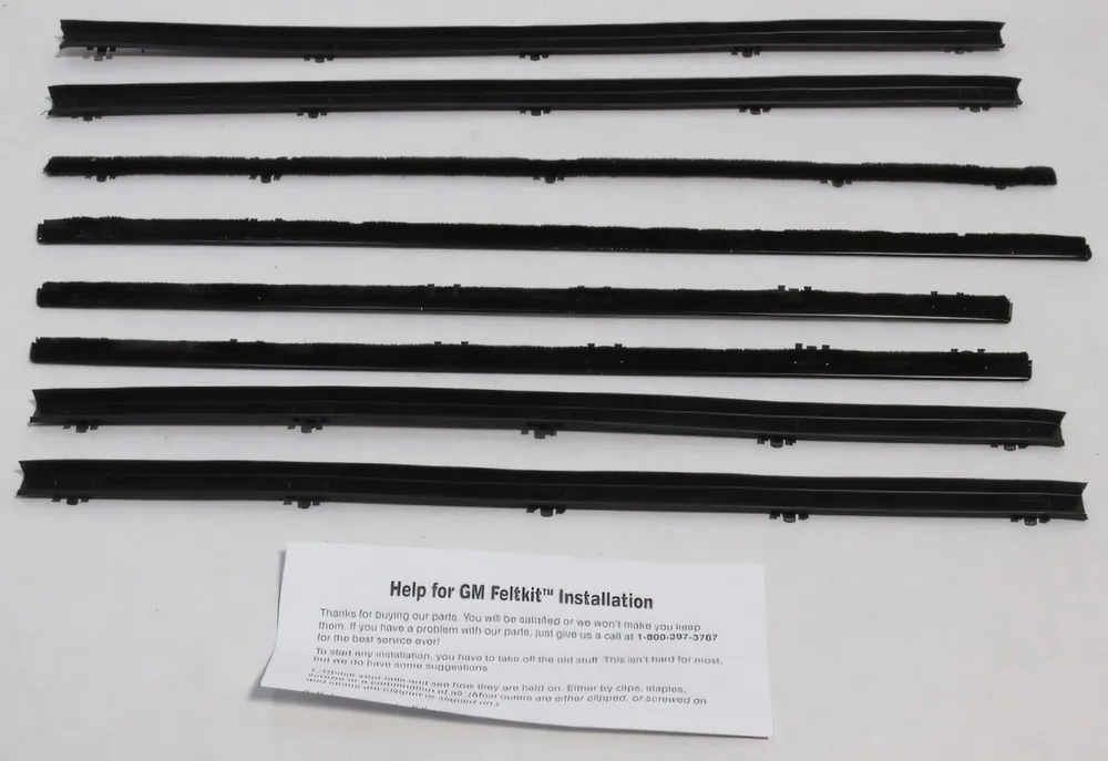 Kits vary by application and may include inner and outer window sweeps, outer sweeps only, or driver- or passenger-side components. Please review the product description carefully to confirm exactly which pieces are included for your specific vehicle.