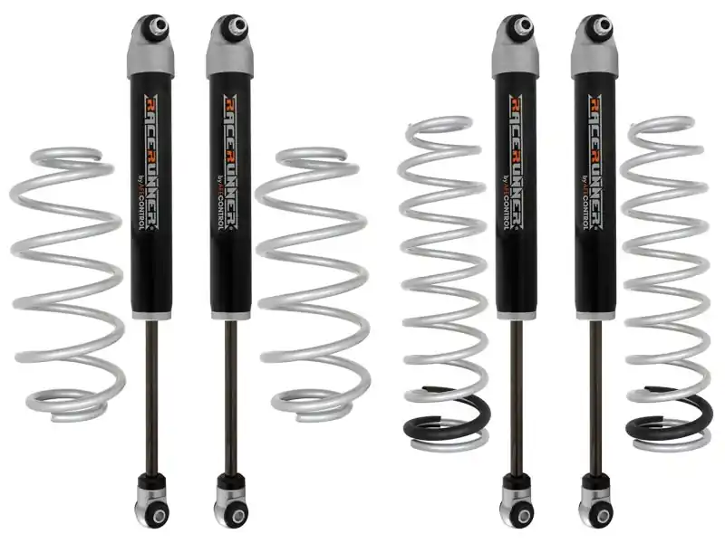 RaceRunner series suspension package offers a 2 IN lift. The RaceRunner shocks are tuned for the perfect balance of on-road comfort and off-road performance with Internal Floating Piston (IFP) design. Matched with RaceRunner leveling coil springs, this kit delivers increased ride clearance, handling and vehicle control and stability on or off-road. RaceRunner front and rear coil springs level the ride height and offer increased ground clearance. RaceRunner springs are precision manufactured from quality materials to maintain durability and longevity. RaceRunner shocks are tuned for the perfect balance For The Perfect Balance Of On-Road Comfort and Off-Road Performance. 2 IN Black Zinc Plated Monotube Shock Bodies To Withstand Rugged Terrain.