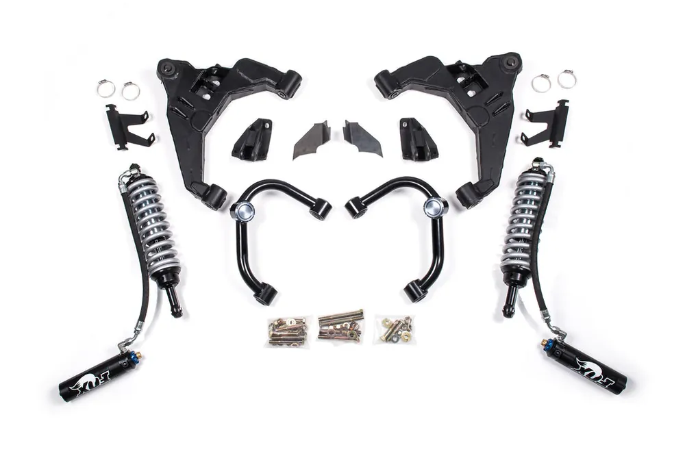 BDS offers complete coilover conversion upgrade kits for your Chevy Silverado and GMC Sierra 2500 / 3500 HD that make it effortless to convert your standard lifted suspension into coilovers. These kits are equipped with heavy-duty brackets and FOX 2.5 Coilovers to withstand any rugged use and abuse you subject them to, taking your vehicle’s performance to new heights. These upgrade kits are compatible with existing BDS 6-inch lift kits, allowing for seamless integration.