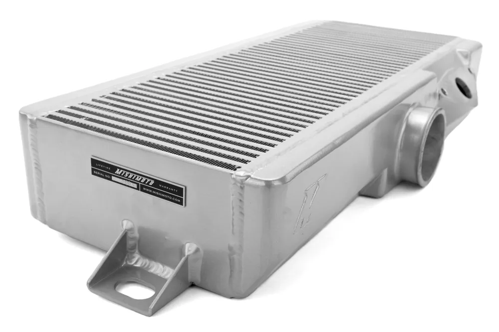 Mishimoto engineers spent months designing and testing this new intercooler to ensure optimum performance on both the street and track. This intercooler utilizes durable cast aluminum end tanks TIG-welded to a highly efficient, dense bar-and-plate core. The Mishimoto intercooler has a 3.75†thick core and a total volume of 584 in3. Thanks to this volume and a very dense offset fin pitch, we are able to optimize heat transfer and support vehicles from stock up to 400 whp. This intercooler endured rigorous testing, showing a 10 °F temperature drop as well as a +5 whp and +7 wtq bolt-on power increase for our stock test vehicle. Installation is simple, requires no modification to the stock A/C line, and can be completed in under 30 minutes.