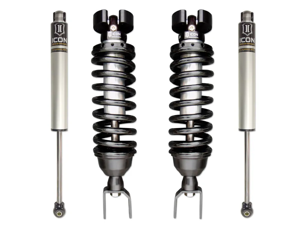 ICON Vehicle Dynamics Dodge Ram 1500 4WD suspension systems are designed with maximum performance and the serious driver in mind. ICON engineers’ primary focus is to increase wheel travel and damping ability, which translates into outstanding vehicle control and ride quality both on and off-road. The Stage 1 system includes vehicle-specific tuned 2.5” coilover shocks featuring an internal reservoir for exceptional cooling properties and ICON-engineered Eibach coil springs for superior vehicle “feel” through the range of travel. These coilovers are also height adjustable from .75-2.5” allowing the use of larger, more aggressive wheel and tire combinations. ICON 2.0 Aluminum Series monotube rear shocks utilize a vehicle-specific valving that balances the performance of the truck from front to rear. The ICON Vehicle Dynamics 2009-2018 Dodge Ram 1500 4WD Stage 1 suspension system is an excellent choice for those drivers looking to enhance the capabilities of their pickup on the road as well as in the dirt.