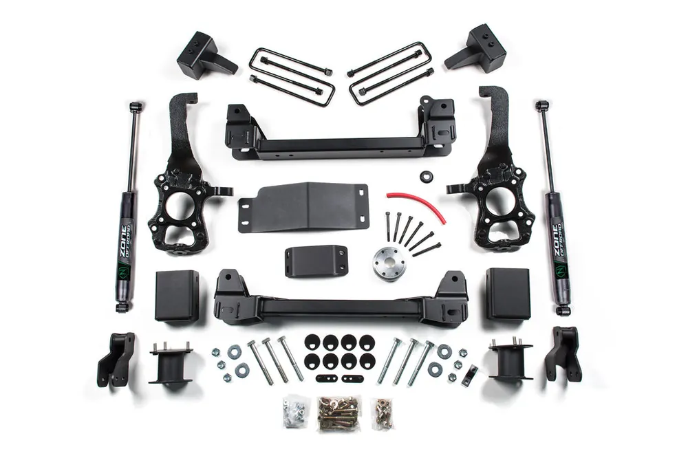 Take your F150 to new heights with this 4″ lift kit from Zone Offroad. Kits include everything needed from high strength crossmembers and steering knuckles to strut spacers andrear block kit to level out the stance. Get the look, performance, and capability your truck deserves with clearance for up to 35″ tires.