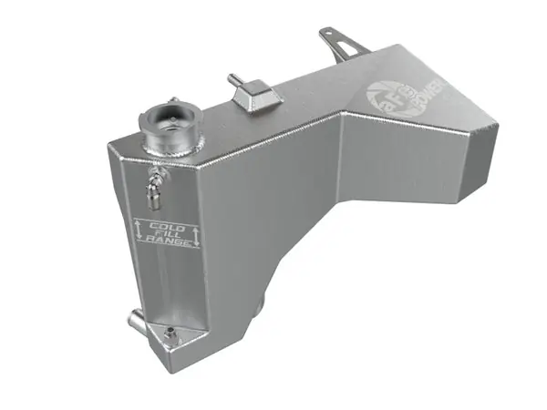 The aFe POWER BladeRunner GT Expansion Tank offers a premium upgrade to the factory expansion tank in your Dodge Charger/Challenger. Say Goodbye to the aging plastics of the stock tank, susceptible to yellowing and brittleness over time, affecting both appearance and reliability.BladeRunner GT Expansion tanks are crafted from 1/8″ thick aluminum plates for superior durability and longevity when compared to factory tanks. The incorporation of billet aluminum fittings eliminates weak points, ensuring a secure, leak-free connection. Not only will this tank perform better for longer, but it is also infinitely more appealing in your car’s engine bay. This tank is 100% TIG-welded for proven strength and durability as well as providing a smooth, high-quality finish. Attached using high-temp stainless-steel fittings, the sight tube allows for quick, accurate filling and monitoring of fluid levels. With a straightforward installation utilizing all factory connections, the BladeRunner GT Expansion Tank effortlessly bolts into the original location. With a sleek brushed finish, laser-etched aFe POWER logo, and a raw aluminum finish, the BladeRunner GT Expansion Tank not only elevates the overall look but also allows for easy customization. Say goodbye to the hassle of covers that simply conceal the issue.
