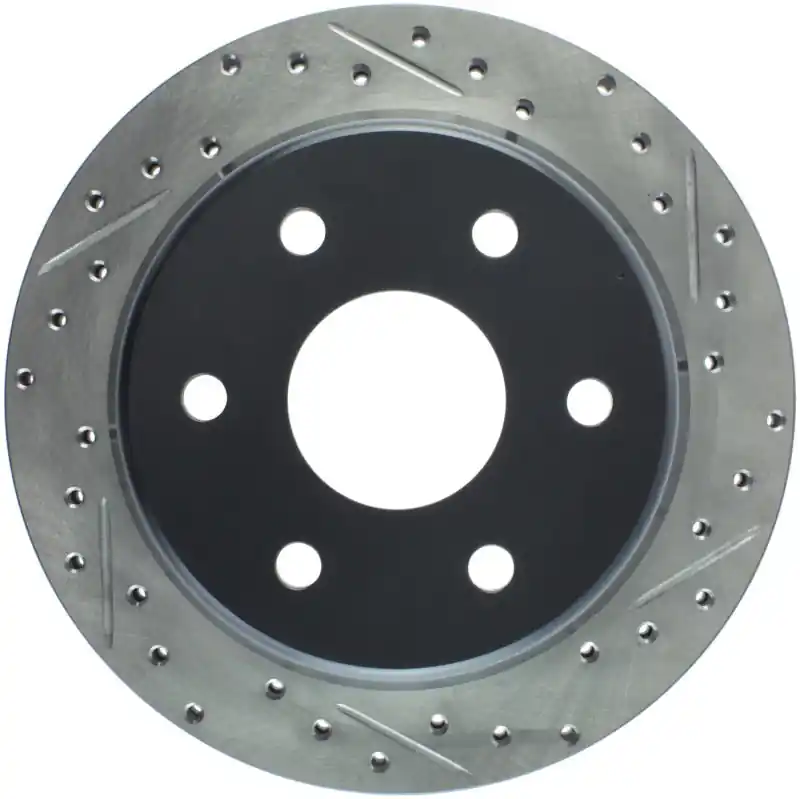 StopTech Drilled and Slotted Sport Rotors are 1-piece direct replacement brake discs for factory brake systems and stock calipers that look great behind your wheels – and offer significantly improved braking performance. The unique cross-drilling and slotting aids with heat and brake dust dispersal; prevents glazing of the pads; adds bite and improves wet and dry braking performance. Built to last; the black e-coating provides protection from corrosion and the high carbon metallurgy (in most applications) offers quieter operation; better crack resistance and increased performance.