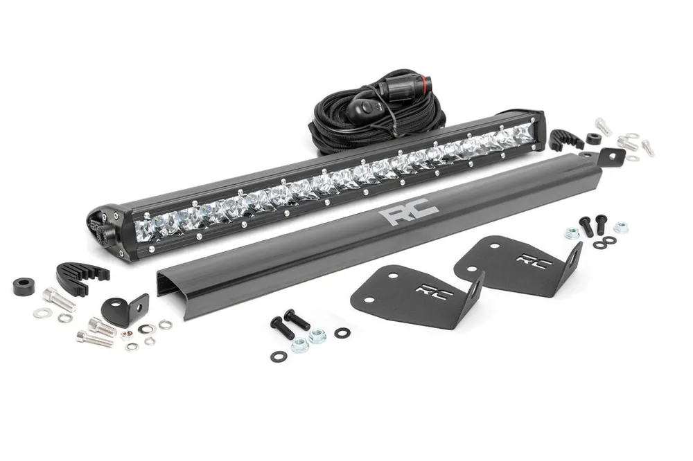 Command The Dark with this convenient, forward-facing lighting product that makes it easy to see the trail ahead, with powerful LED illumination provided by Rough Country’s 20in Single Row LED Light Bar. Each kit includes your choice of Rough Country’s Chrome-Series or Black-Series Light Bars with optional DRL capabilities for the exact look you desire.