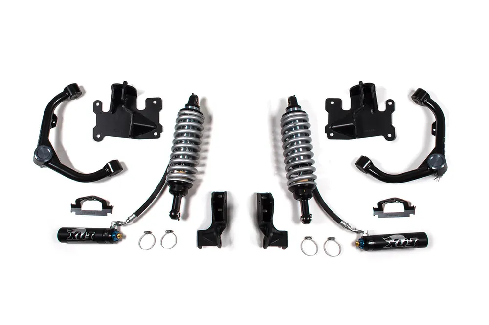 BDS offers complete coilover conversion upgrade kits for your Chevy Silverado and GMC Sierra 2500 / 3500 HD that make it effortless to convert your standard lifted suspension into coilovers. These kits are equipped with heavy-duty brackets and FOX 2.5 Coilovers to withstand any rugged use and abuse you subject them to, taking your vehicle’s performance to new heights. These upgrade kits are compatible with existing BDS 6.5-inch lift kits, allowing for seamless integration.
