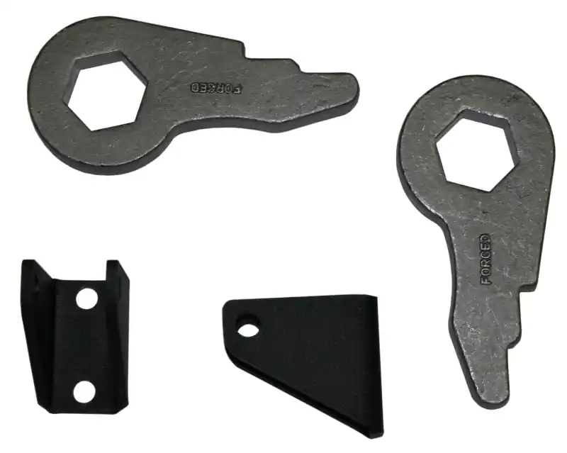 Forged torsion key kits consist of a set of re-engineered forged torsion adjustment keys. This design levels out the front of all torsion bar-equipped 2wd and 4wd trucks and SUVs without compromising the factory ride and allows for up to 33in. tall tires. These Skyjacker torsion keys use superior manufacturing, materials and tolerances in order to increase the strength of these torsion keys. These tight tolerances increase the surface area contact between the torsion key and bar, increasing the strength of the overall design and improving functionality. Forged the same as OE to assure durability and longevity, not cast or machined.