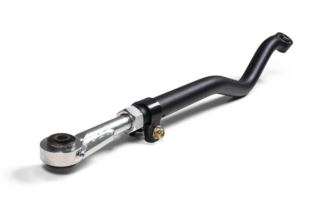 Unlike other adjustable track bars on the market, this threaded double adjustment collar allows you to easily make changes while the track bar is already installed on the vehicle and is designed for use with 0 to 4.5-inches of lifted models, compatible with most kits on the market. Lock in the length with the provided pinch bolt-style clamp. Formed for proper clearance around critical front-end components and is designed for easy bolt-on installation.