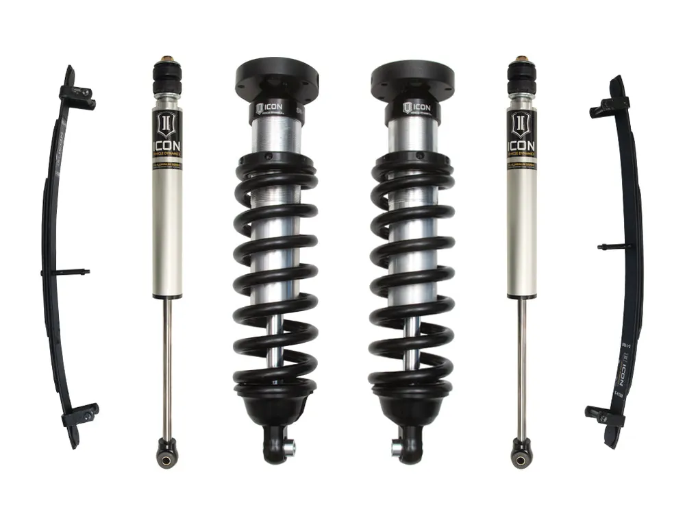 ICON Vehicle Dynamics Toyota Tundra Stage 2 suspension systems are designed with maximum performance and the serious driver in mind. ICON engineers’ primary focus is to increase wheel travel and damping ability, which translates into outstanding vehicle control and ride quality both on and off-road. The Stage 2 system includes vehicle-specific tuned 2.5” coilover shocks featuring an internal reservoir for exceptional cooling properties. These coilovers are also height adjustable from 0-2.5” of lift allowing the use of larger, more aggressive wheel and tire combinations. ICON 2.0 VS Aluminum Series monotube rear shocks utilize a vehicle-specific valving that balances the performance of the truck from front to rear. The ICON Vehicle Dynamics 2000 – 2006 Toyota Tundra Stage 2 suspension system is an excellent choice for those drivers looking to enhance the capabilities of their pickup on the road as well as in the dirt.
