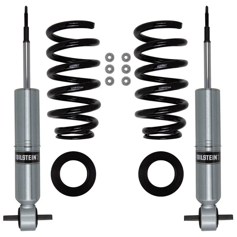 Bilstein B8 6112 leveling kits are designed to provide more ground clearance, allow for larger tires, and increase wheel travel. Multiple snap-ring grooves in the body allow for different spring seat positions, providing 0-2.75 inches of front lift (depending on application). These kits consist of (2) 60mm shock absorbers combined with (2) custom matched cold wound coil springs and (2) billet aluminum spring seats. The large 60mm digressive piston allows for increased damping control for optimal on-road and off-road capabilities. Experience the legendary Bilstein off-road experience with the best direct fit spring and shock kit for your light truck or SUV.