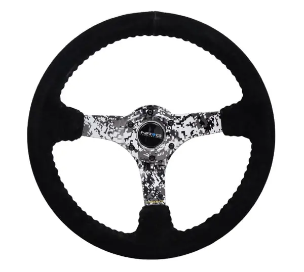 NRG Reinforced Steering Wheel (350mm / 3in. Deep) Blk Suede w/Hydrodipped Digi-Camo Spokes