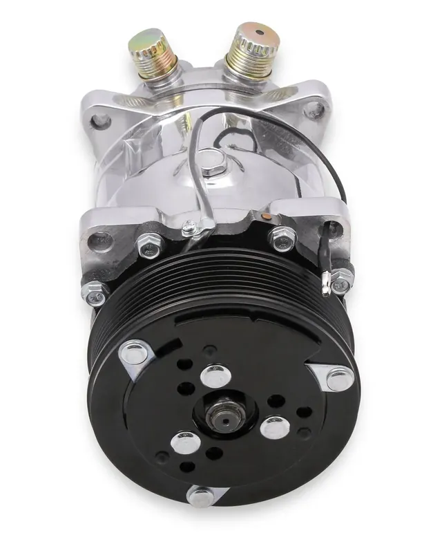 Polished SD508 is the compact high performer of the Holley compressors.It tolerates bursts of higher RPM better than other compressors and has a light weight clean design.This also is an OE manufactured compressor.(Sanden)