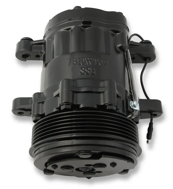 Black SD7 is the compact high performer of the Holley compressors.It tolerates bursts of higher RPM better than other compressors and has a light weight clean design.This also is an OE manufactured compressor.(Sanden)