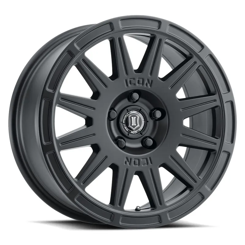 ICON Alloys Ricochet, Satin Black, 17 x 8 / 5 x 108, 38mm Offset, 6″ BS