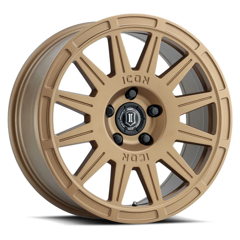 ICON Alloys Ricochet, Satin Gold, 17 x 8 / 5 x 100, 38mm Offset, 6″ BS