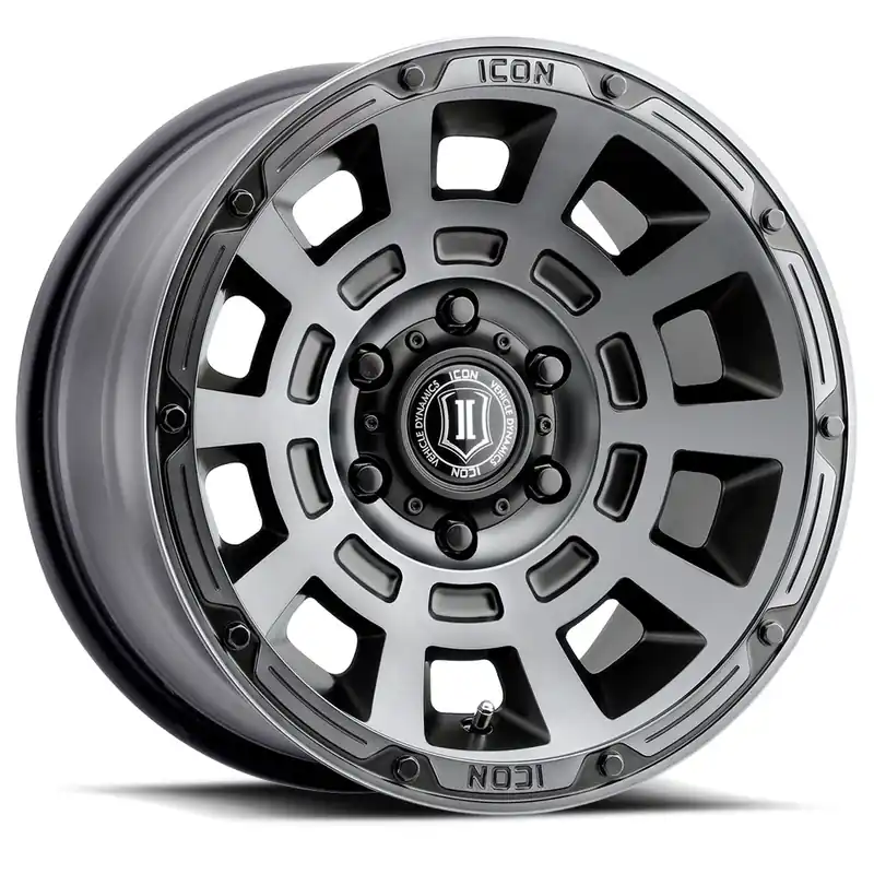 ICON Alloys Thrust, Smoked Satin Black 17 x 8.5 / 6 x 5.5, 25mm Offset, 5.75″ BS