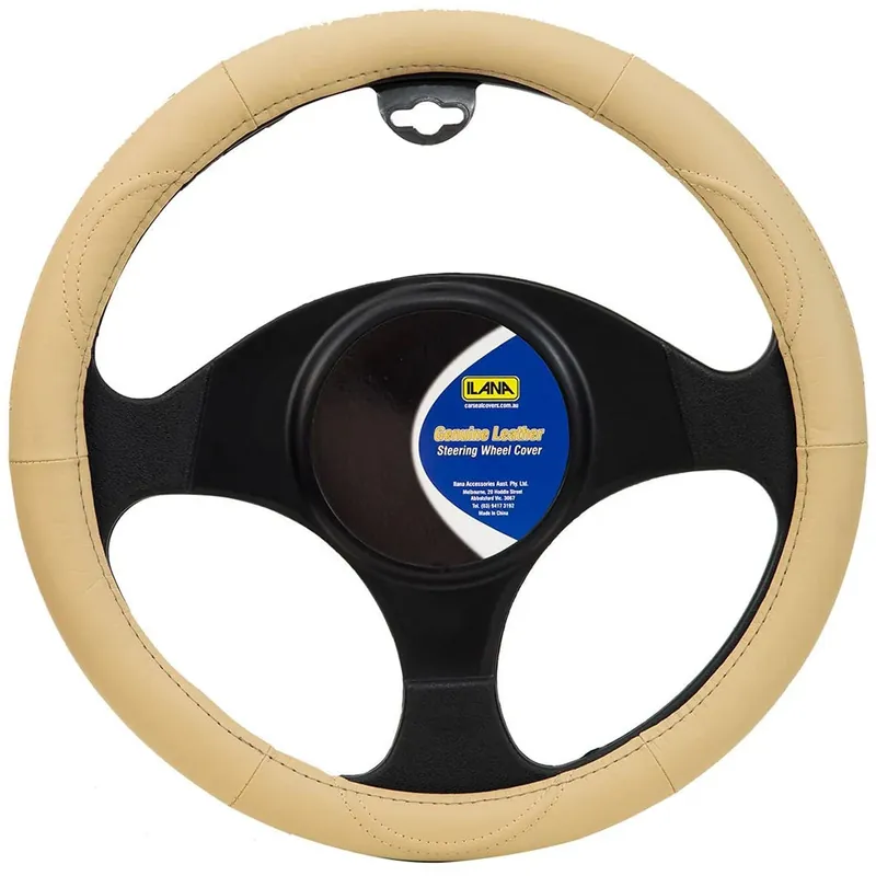 A sporty yet classy looking steering wheel cover made from leather with a nice stitch design. Available in 3 colours.