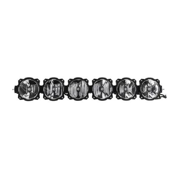 FEATURES-Powered by Gravity LED G6 optical insertsefficient, powerful, patented-Patent-pending Infinity Ring system enables the conversion of the Pro6 from straight to radius format in seconds (Patent-pending Application 14/704,736)-Signature KC modular design is expandable to different widths-Extremely high output with very low amperage draw-Multiple G6 beam patterns availableSpot, Driving, Wide-40LIGHT PERFORMANCE-Raw Lumens: 13,800 lm-Lux @ 10 Meters: 5,150 lx-Candela: 515,000 cd-Beam Distance (Meters): 1,435mSPECIFICATIONS-Wattage: 120W-Amp Draw: 9.78A-Voltage: 9-32V-Dimensions: H – 6.06″ xD – 3.33″ xW – 39.125″PARTS INCLUDED-(1) Pro6 LED Light Bar-(6) Light Covers – Black w/ Yellow KC Logo-Deluxe Plug-N-Play Wiring Harness with 30A LED SwitchPERFORMANCE Gravity LED OPTICSPatented Gravity LED G6 optical inserts provide exceptional efficiency and light output. 20W, G6 optics are available in Spot, Driving and Wide-40 patterns. INFINITY Ring SYSTEMThe Infinity Ring system provides a race-proven, adjustable linking system featuring expandable widths, modular beam shape and a radius or straight setting between each ringUNIVERSAL END MOUNT SYSTEMThe Pro6 LED light bar comes ready to fit most standard LED bar widths and is designed with high-strength aluminum end mounts.This universal mounting design easily attaches to KC mounts on your Jeep, Truck or UTVRACE PROVEN STRENGTH & DURABILITYInspired by endurance racing and tested by KC athletes worldwide, the Pro6 is set to break all performance barriers while providing the most durable, reliable and scalable light bar design available today