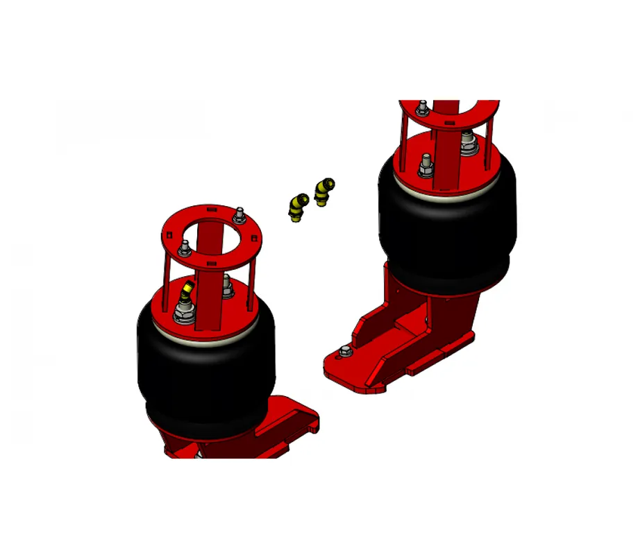 The Kelderman 2-Stage Front Air Suspension System includes upper and lower airbag mounting brackets, industrial-strength airbags, and comes standard with Kelderman custom valved 2.0 monotube shocks. These 2-Stage Front Air Suspension kits are available in a stock height variety to provide a factory look in your Ford truck. If you are using your truck with a heavy front bumper or a heavy snowplow, these front kits are perfect for carrying the weight. You’ll never have to worry about any sagging from the front suspension, simply add more air to the 2-Stage Front kit until it’s back to the proper ‘ride height’.