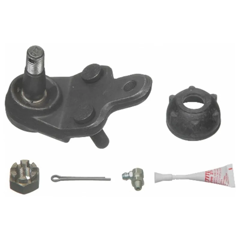 Package Contents: 1 Ball Joint, 1 Dust Boot, 1 Castle Nut, 1 Cotter Pin, 2 Bolts, 2 Nuts, 2 Lock Washers, 1 Grease Fitting