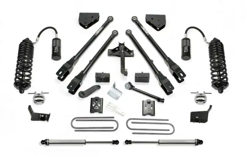 Fabtech continues its legendary Coilover Conversion systems with an all new design for the 2011-16 Super Duty. This new system utilizes the factory coil spring bucket for a fast, easy installation with an affordable price. The heavy duty bracketry allows the installation of the massive Dirt Logic 4.0 Remote Resi Coilover shocks.Dirt Logic Coilovers are constructed with a Stainless Steel body and NitroSteel? piston rod for maximum corrosion resistance. The Dirt Logic 4.0 for 6? lift systems feature dual rate coil springs for a superior quality both on and offroad.