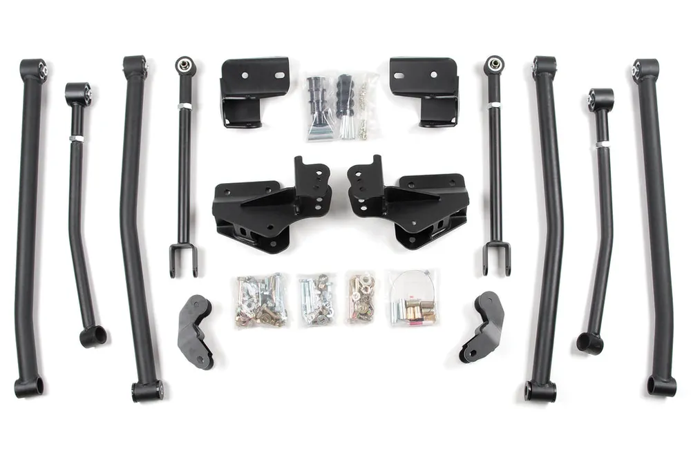 Upgrade your Jeep Wrangler JK (2007-2018) with a new BDS True 4-Link Long Arm system that can accommodate lifts of 4.5″ to 6.5″. Not only will this long arm system significantly enhance off-road performance, but it will also provide a more stable driving experience both on and off the road. Improving on the factory 4-link the redesigned 4-link long arm improves articulation and control through wheel travel. If you’re after genuine flex, a BDS long arm system is the way to go.