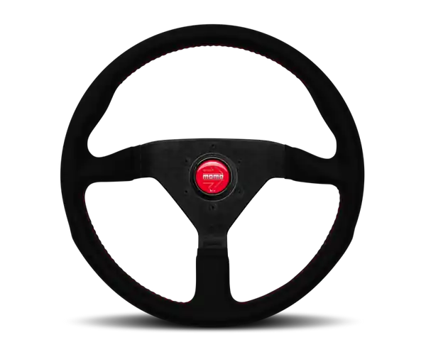 Momo Montecarlo Alcantara Steering Wheel 320 mm – Black/Red Stitch/Black Spokes