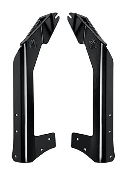 This overhead light bracket allows you to mount KC/#39;s Gravity LED Pro6 or C-Series LED light bar over the windshield at roof level of your Jeep JK. These brackets are made of hardened steel and powder coated black for the ultimate in durability. KC HiLiTES ensured that mounting was easy when designing this bracket; allowing the user to bolt it right into the factory bolt locations. These brackets are Made in the USA and also come with mounting hardware; gaskets; and our signature KC 23 year warranty.