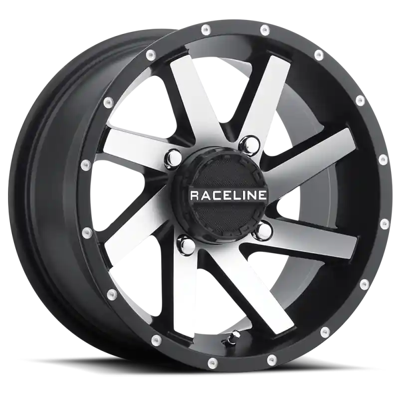 Raceline A82M Twist 14x7in / 4×137 BP / 10mm Offset / 110.2mm Bore – Black & Machined Wheel