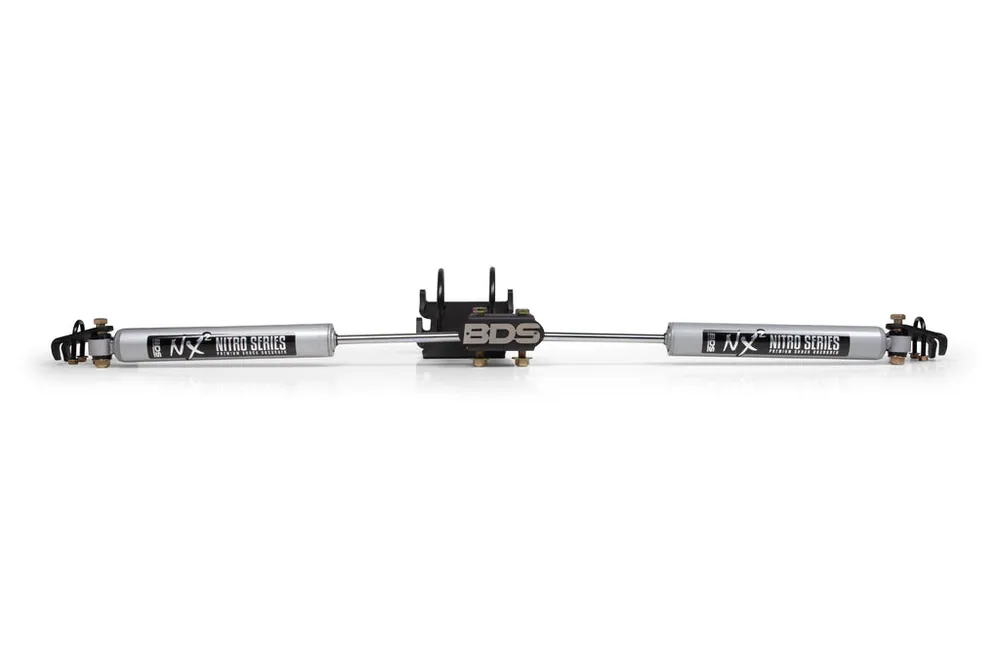 Upgrade your Ford F-250 or F-350 with the BDS Dual Steering Stabilizer, engineered for 2005-2025 models. Designed to accommodate both stock heights and lifts up to 2 inches, this advanced stabilizer significantly reduces side-to-side tire motion, enhancing your vehicle’s handling and ride quality.