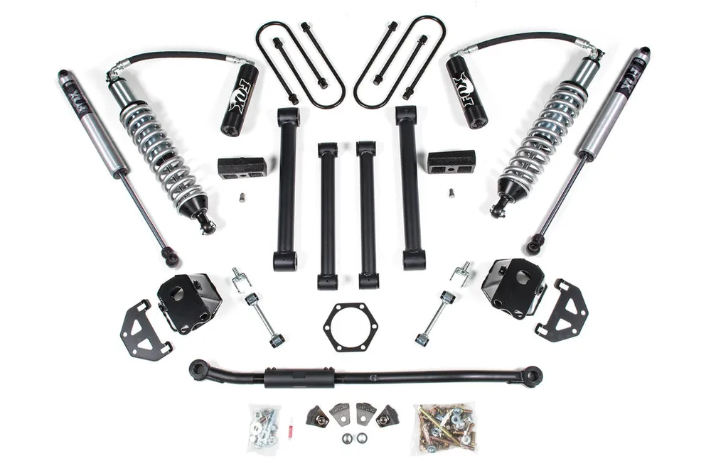 These kits feature proprietary FOX 2.5 coil-over shocks designed specifically to bolt-on performance for increased travel and the ability to soak up the roughest terrain along with smooth on-road comfort. Additionally, BDS engineered fixed length, greaseable, heavy-duty round tubular construction upper and lower control arms that position the axle properly and adjust for proper caster and pinion angles.