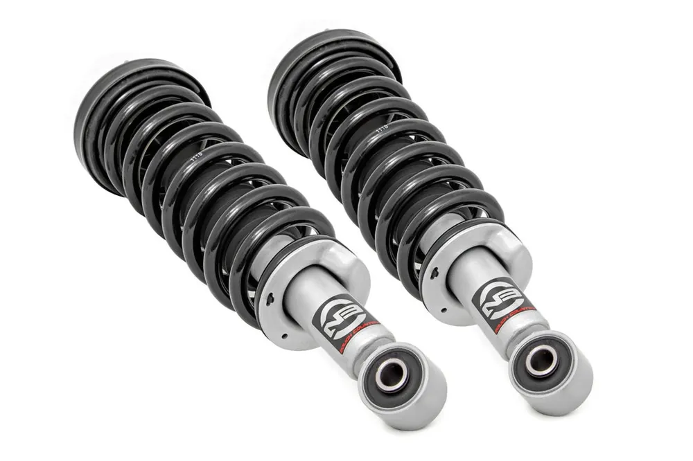 Do you want a great looking truck that still rides like the day you bought it? Our Nitrogen charged, loaded struts add superior ride quality to your truck while maintaining a stock, factory ride height. Each strut includes a pre-loaded coil for lightning-fast installation without the need for complicated strut disassembly.Rough CountryΓÇÖs Performance N3 Struts feature a massive bore and chrome-hardened piston rod with leak-proof piston seal for exceptional durability during off-road use. Each strut is specifically tuned for its intended application and includes a variable dampening system for outstanding handling and control on all road conditions. These Performance N3 Struts offer improved tire contact with the road for increased stability and performance.These struts are engineered to fit perfectly on each intended application, and feature a pre-installed coil spring for easy installation without the need for strut disassembly. Simply remove your factory strut and replace with this easy, convenient system. Add this upgrade to your lift kit for an increased ride quality that mimics the factory responsiveness and handling of the OE strut. Includes a 3-year Limited Warranty.