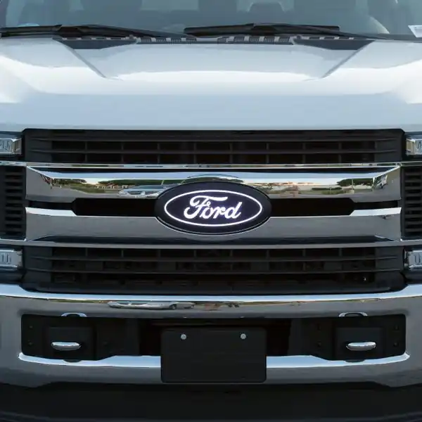 Enhance the visual appeal of your Ford truck by replacing its standard blue factory front grille emblem with the newly introduced illuminated Ford LED oval emblem.These officially licensed, high-intensity Luminix™ Ford LED Front Grille Emblem feature Chip-On-Board LEDs that emit a brilliant white light with a high intensity of 6,500K. They also feature a captivating start-up sequence that commences the moment you start your engine. Installation is effortless, as these emblems seamlessly replace your original OEM emblem using the same mounting hardware. Additionally, the wiring features a Plug and Play wiring harness that directly integrates into the fuse box or the new quick-connect wiring harness (available for 2021 and newer models), which conveniently installs directly into the headlamp plug.Available for Ford F150, Super Duty, and Ranger, this new Luminix Ford LED Emblem will undoubtedly turn heads. It is officially licensed and patented, with a patent number of 11,371,688 B1.