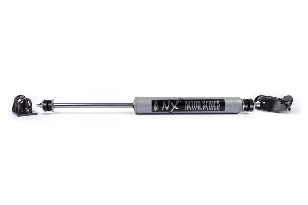 The BDS NX2 Stabilizer uses a pressurized nitrogen-charged twin-tube design with 10-stage velocity-sensitive valving for lightning-fast dampening adaptive to whatever terrain you traverse on- or off-road. The 2-inch bodied shocks use a large 1-3/8-inch fluon-banded piston, self-lubricating seals and a 14mm hardened chrome shaft to help resist rock chips and corrosion.
