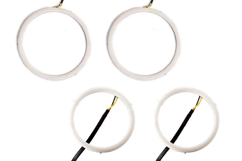 FeaturesProprietary durable phosphor coating, to create uniform, solid appearance. Extremely bright, high-density LEDs that are visible even in direct sunlight. Multi-function PWM drivers, fully waterproof, featuring low power, high power, and turn signal modes. Integrated mounting tabs for easy installation.Overview The white and red wires both activate the color of the LEDs, at different brightness levels. Your order includes “low priority” drivers by default, meaning that if both wires are powered, low power will take priority. This is convenient for connecting the red wire to a parking light or DRL signal, for use during the day as a high-power DRL. Then, if the white wire is connected to the headlamp power, they will dim down at night. Of course, this is completely optional, and you can just use one of the input wires if you’d like. The signal wire will output even higher power to the ring, so it cannot be run constantly, or the driver will overheat. It should only be connected to a turn signal. If you’d like amber for a running light, please select the single color amber rings instead. What’s IncludedTwo (2) HDLED Halos Two (2) waterproof drivers Two (2) input wire pigtails with T-taps Installation guide 3-year replacement warranty
