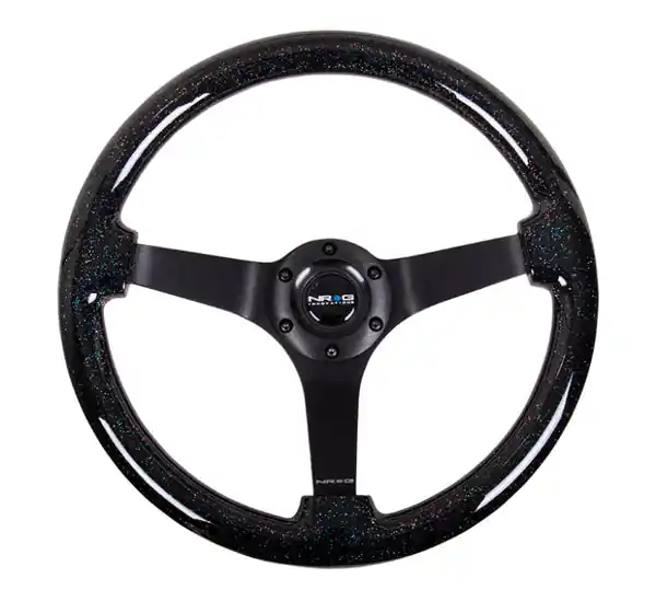 NRG Reinforced Steering Wheel (350mm / 3in Deep) Classic Blk Sparkle Wood Grain w/Blk 3-Spoke Center