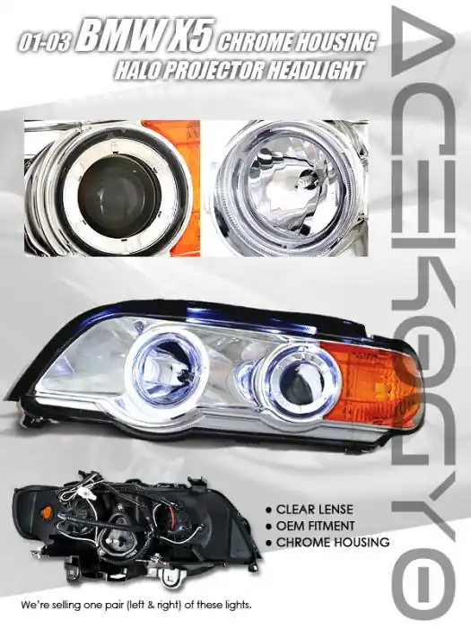 One Day Deal Euro Chrome Blue Halo Projector Headlights – Amber