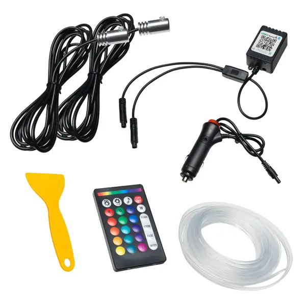 ORACLE Lighting’s new Fiber Optic Interior Kits are the perfect way to accent your vehicle’s dull interior in a clean and seamless way. The special side-firing fiber optic cables have an integrated edge to make installation easy on any vehicle. Using the included installation tool, insert the integrated edge between interior body panels in your vehicle including door panels, dashboard, headliner, console, and more. The power cord adapter has a switch to turn ON and OFF the lights conveniently. This is a universal product and while this is simple in most cases it is important to understand each vehicle is different and may need some installation experience to pull off the perfect install, so we recommend professional installation. How It Works: The fiber optic is end lit by a LED light head. We recommend for any length over 3′ you end-light both ends of the cable for the best and brightest look. The light travels through the fiber and lights up smoothly along the way for a very clean and understated appearance. The integrated edge is designed to hold the fiber optic cable tightly without the use of any adhesive. Our ColorSHIFT(tm) option comes with a remote that allows you to select the exact color you want to use, adjust the brightness, and even do different effects like pulse, strobe, and smooth color transitions. You can also control your fiber optic interior kit using the free app called “LED LAMP.” Available for Android and IOS.