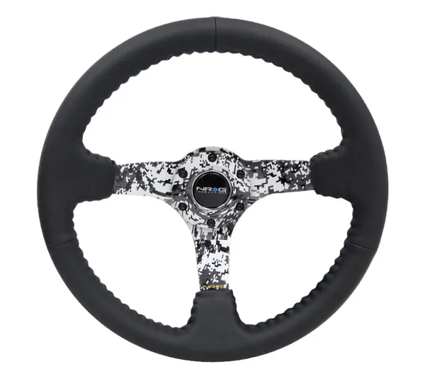 Original NRG Reinforced Steering Wheel (350mm / 3in. Deep) Blk Leather w/Hydrodipped Digi-Camo Spokes