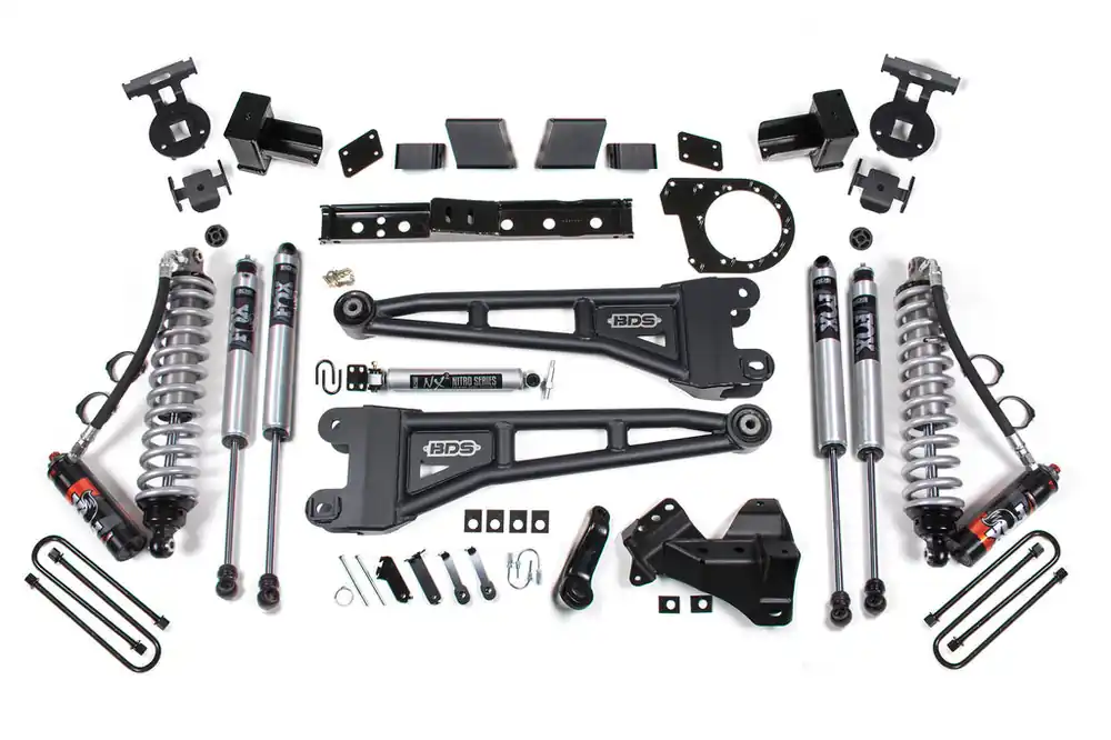 Built to Outperform, take your Ford Super Duty diesel truck to the next level with this 7-inch radius arm lift kit with FOX 2.5 Performance Elite Coil-over shocks from BDS. Designed to improve stance, performance, and capability, this kit includes everything necessary to set your truck up right with clearance for up to 38″ tires.