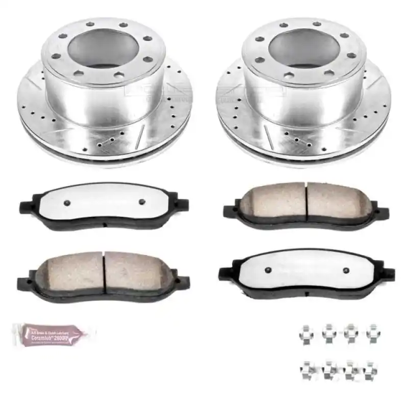 PowerStop is on a mission to deliver an easy way for any driver to upgrade their brakes – no matter where or how they use their vehicle. Our Z36 Truck & Tow Brake Upgrade Kit is recommended for trucks, 4x4s, and SUVs that not only work hard, but play hard as well. This brake pad and rotor kit comes with everything you need, including premium stainless-steel hardware, for an easy, bolt-on installation. The low-dust Ceramic brake pads are reinforced with Carbon-Fiber to provide severe-duty stopping power without sacrificing everyday drivability. These pads are paired with Drilled & Slotted rotors that keep brake temperatures down by maximizing heat dissipation, critical for those long mountain descents. Whether towing a boat or trailer, hauling for the jobsite, or tackling a tough off-road trail, get the easy and affordable, bolt-on performance upgrade with the Z36 Truck & Tow Brake Upgrade Kit.