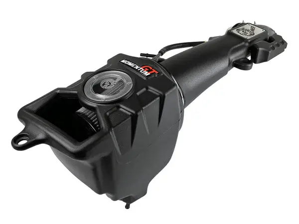Unique One-Piece High Quality Housing w/ Sight Window:A custom computer designed roto-molded housing eliminates the use of multiple components and ensures the coolest air intake charge available. A clear sight window allows for filter inspection without removal of the airbox. The roto-molded housing is made of heat soak resistant cross-linked polyethylene. The housing is designed to retain the same water fording height as the factory intake system while providing more air flow and better protection.Roto-molded Tube:This system uses a CAD designed, dyno-tuned, roto-molded intake tube to achieve maximum power gains while maintaining a perfect fit. The roto-molded tube has a built-in resonance chamber to suppress any unwanted air intake noises.Large 3-Layer Performance Air Filter:This Momentum GT intake system was designed around the largest filter possible to allow maximum performance and filtration. This filter has a massive 5 IN round flange and is 8 IN tall with an inverted top and features our non-oiled Pro DRY S media. The Pro DRY S performance air filter features 3-layers of progressively finer porosity synthetic media that does not require oil providing maximum convenience. The unique air filter to housing interface (patent pending) allows for maximum filter size which increases the available air volume while simplifying the installation process.Premium Hardware:Premium stainless-steel t-bolt clamps are used for durability and provide the best corrosion resistance possible. Momentum GT intakes are designed with fewer parts for a quick and simple installation.
