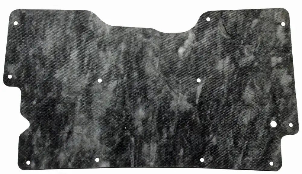 A hood insulation pad heat shield is an under-hood insulating layer designed to reduce engine heat and noise from transferring into the passenger compartment. It also helps protect hood paint and metal from heat damage.