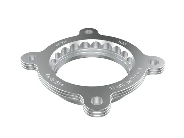 The Serrated/Helix combination design creates intake turbulence in the combustion chamber. This turbulence breaks up the fuel which creates a more complete combustion cycle increasing horsepower, torque and improving throttle response. The Serrated/Helix combination design also reduces intake whistle that occurs with Helix only designs. All Silver Bullet Throttle Body Spacers are constructed from 6061-T6 billet aluminum precision machined for light weight, high strength and perfect fit and finish. This Silver Bullet throttle body spacer uses all factory mounting locations providing stability and a hassle-free installation.